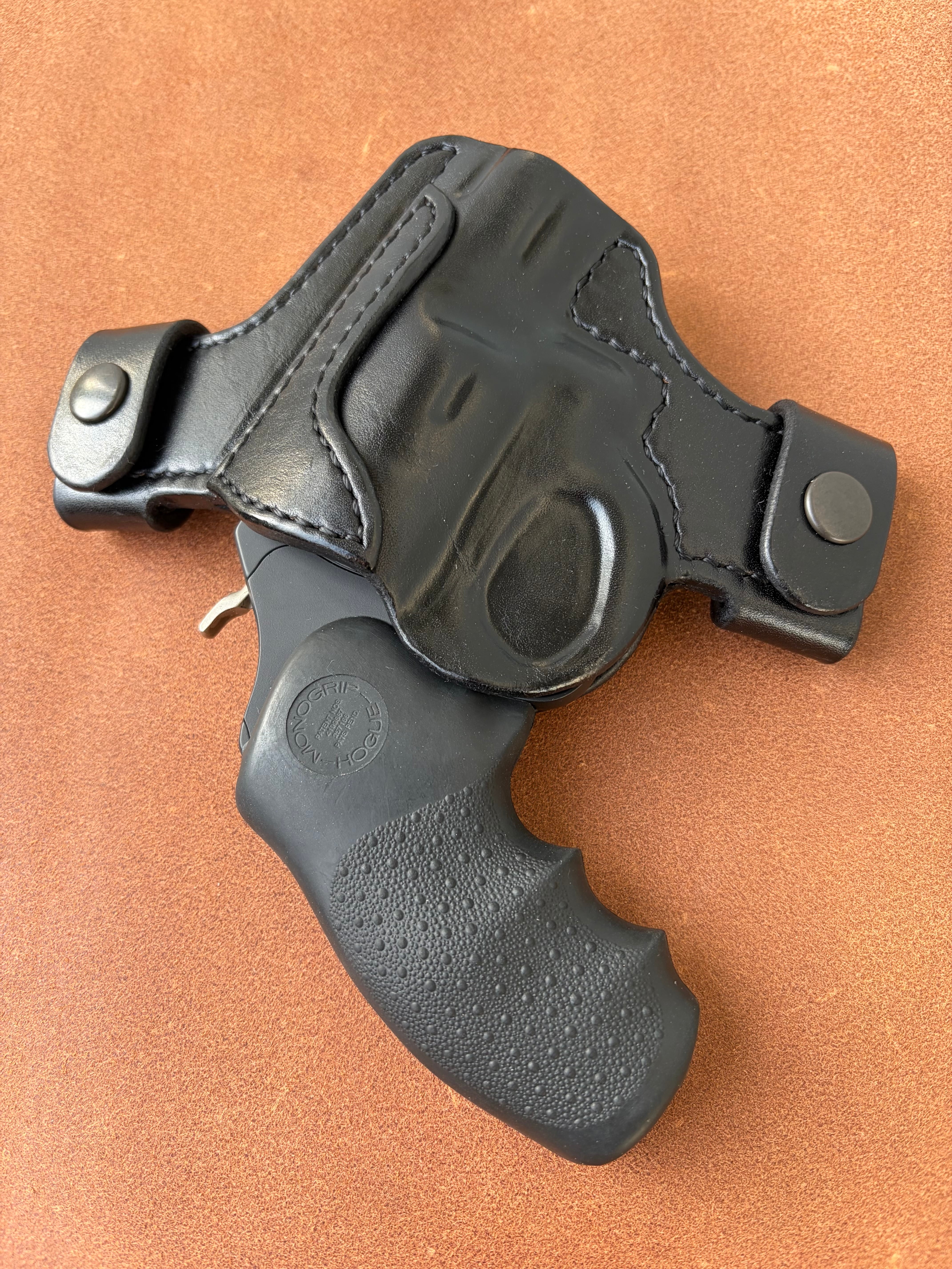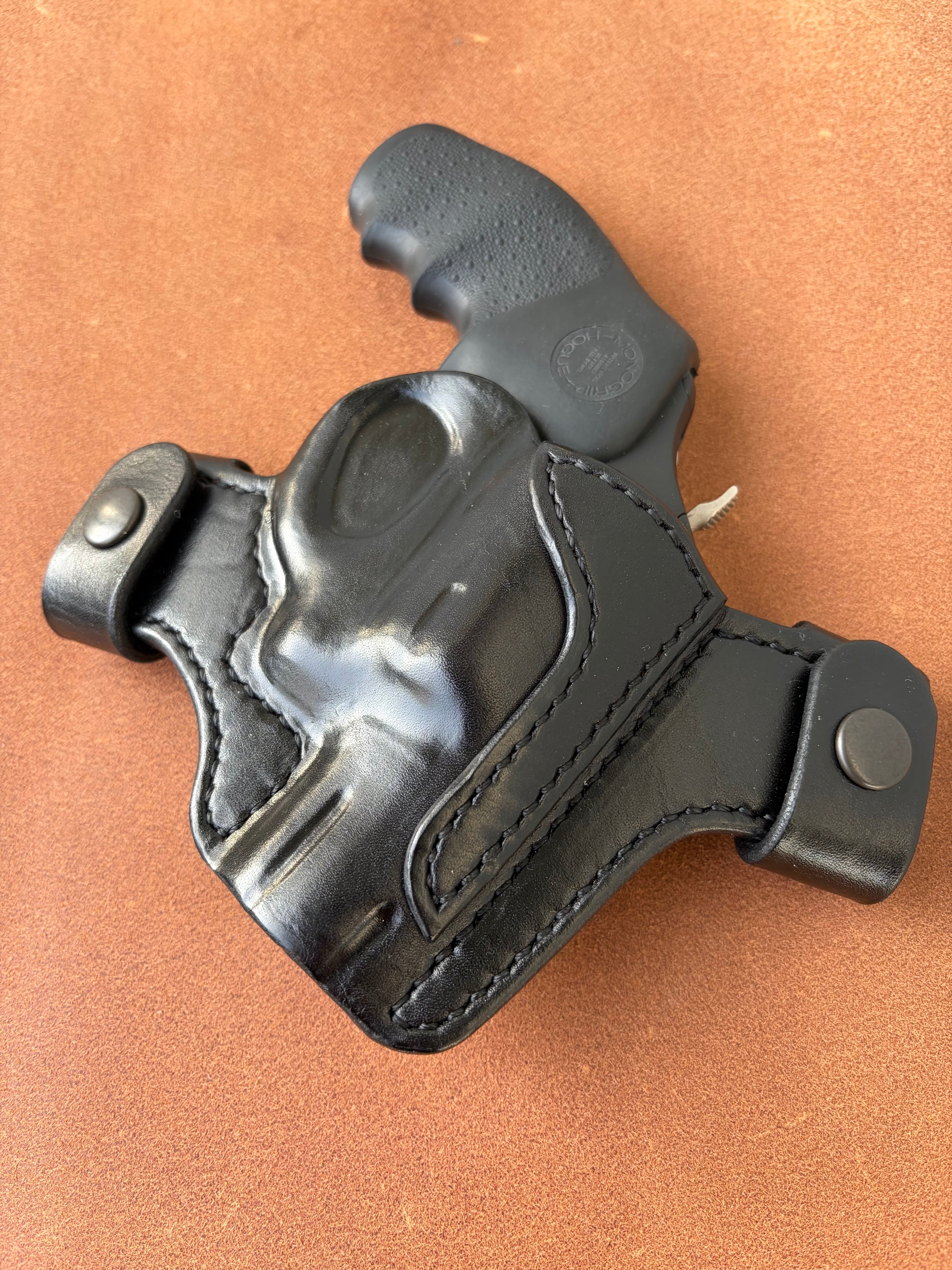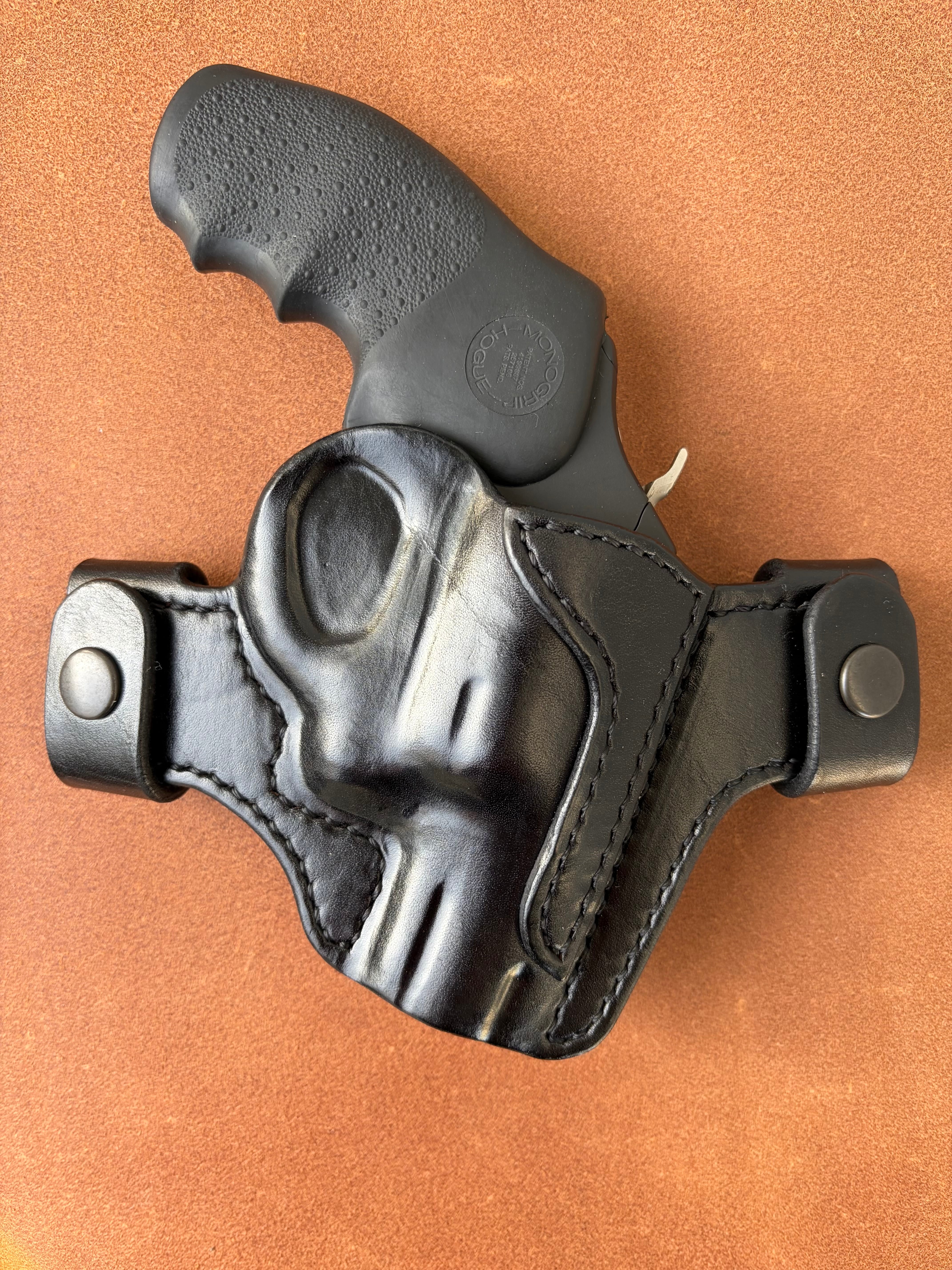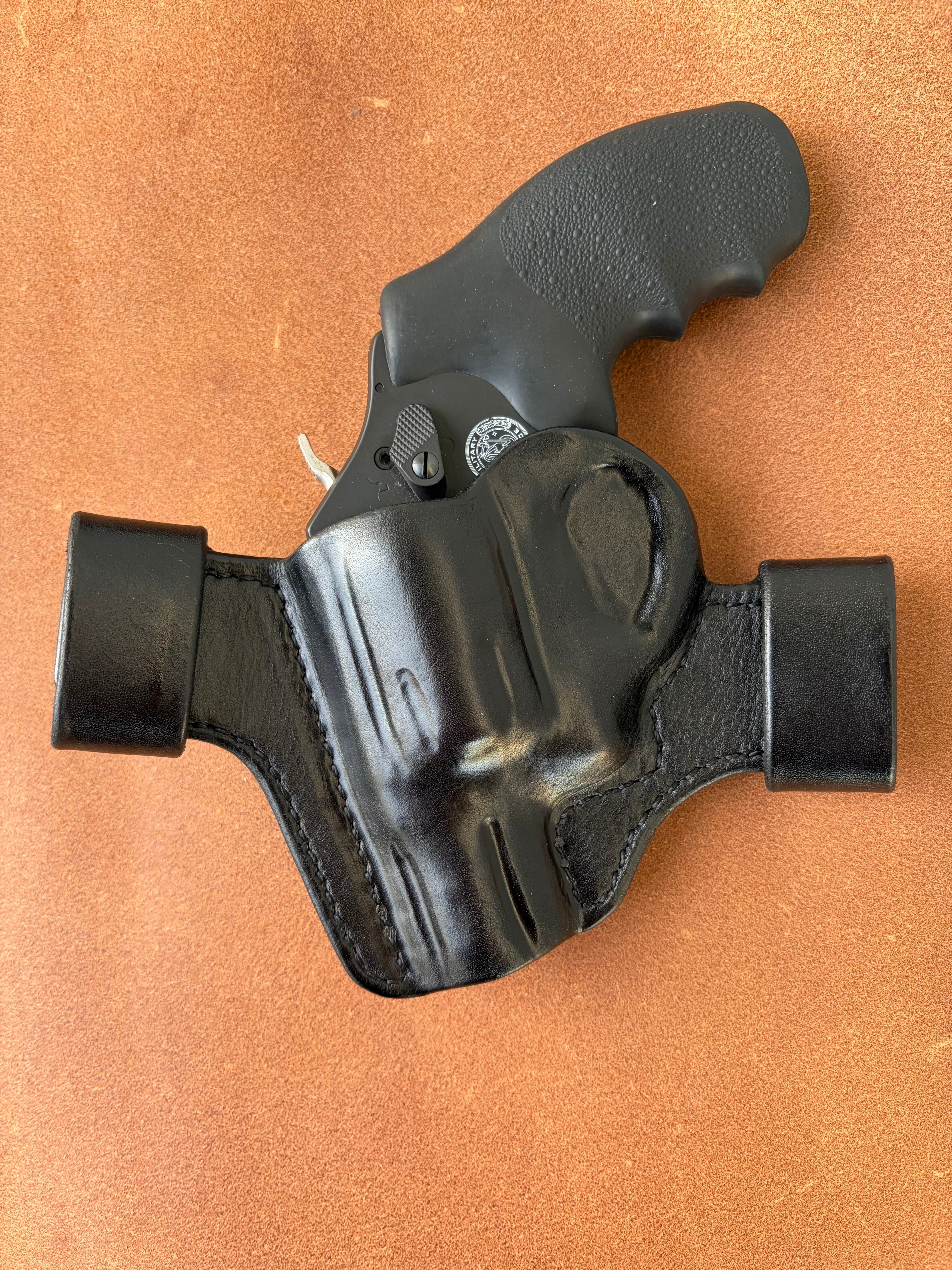 栃木レザー4mm厚(フルベジタブルタンニン鞣 ヌメ革)を切り出し黒染色を行いウエットフォーミングでフィッティングしておりスムーズにリホルスター可能です