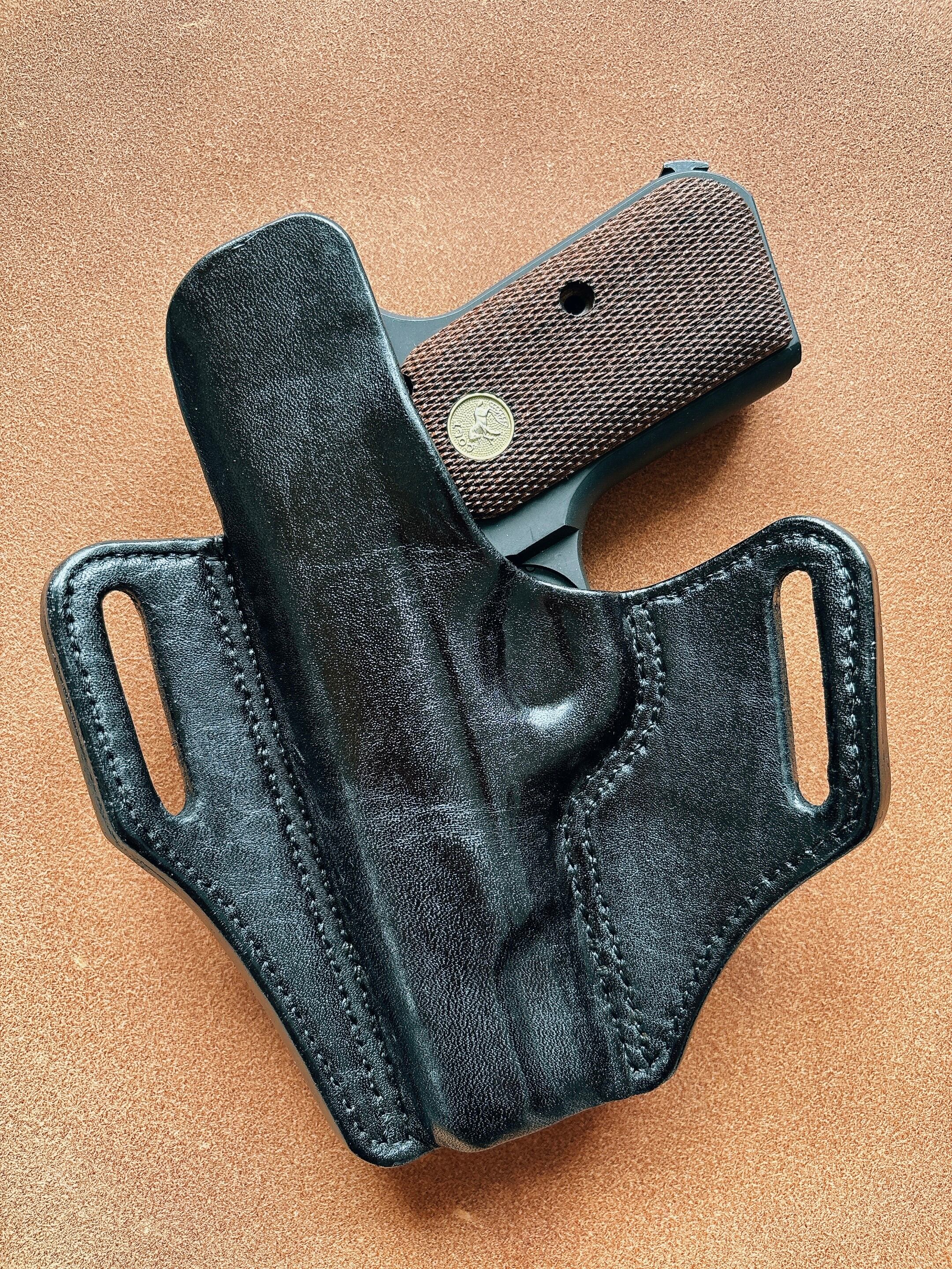 黒染め染色を行いウエットフォーミングにより整形しており銃の形状にフィットさせておりますので抜き易く、ホールド感がありホルスターから銃が脱落する事はありません