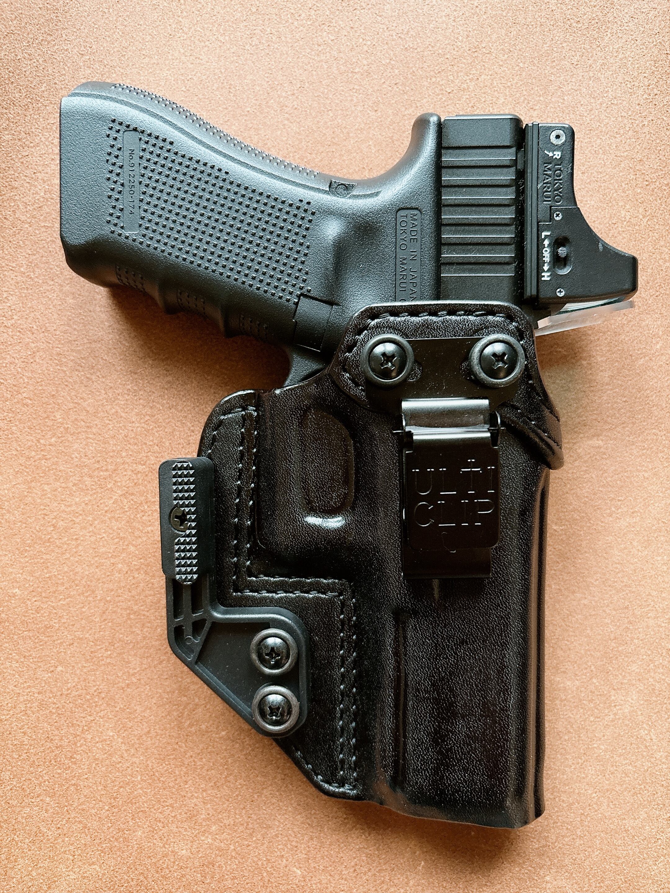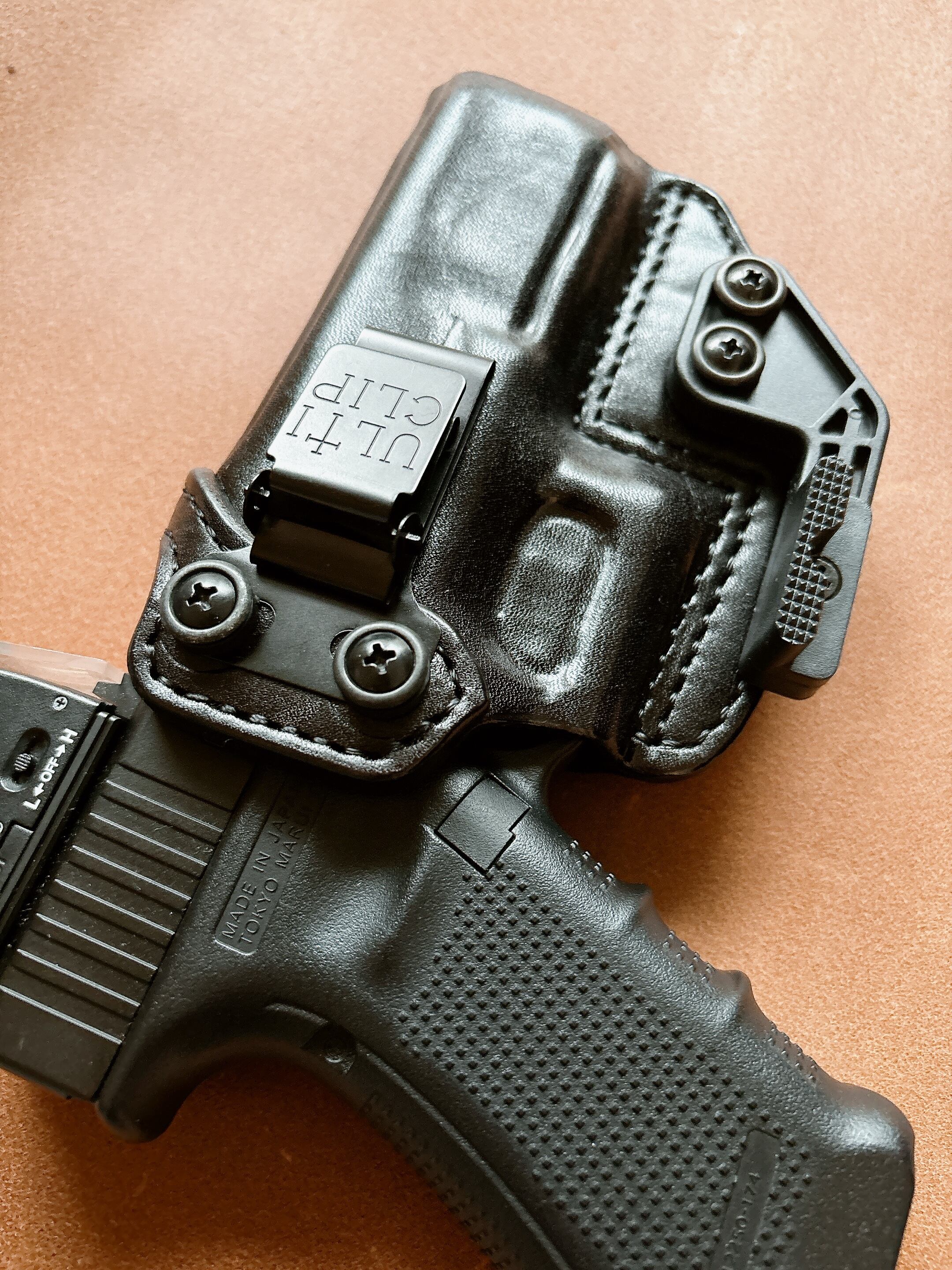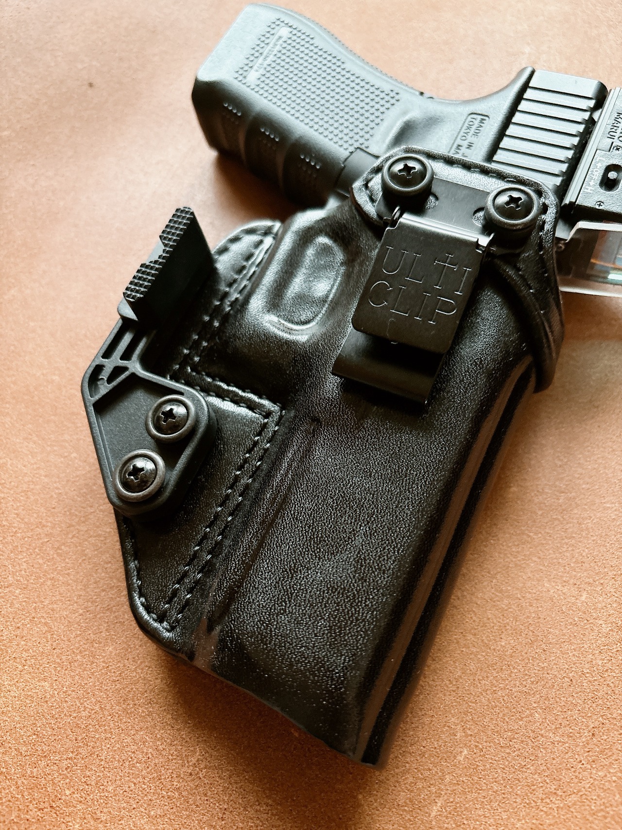 栃木レザー4mm厚(フルベジタブルタンニン鞣 ヌメ革)を切り出し黒色染色を行いウエットフォーミングでフィッティングしておりスムーズにリホルスター可能です