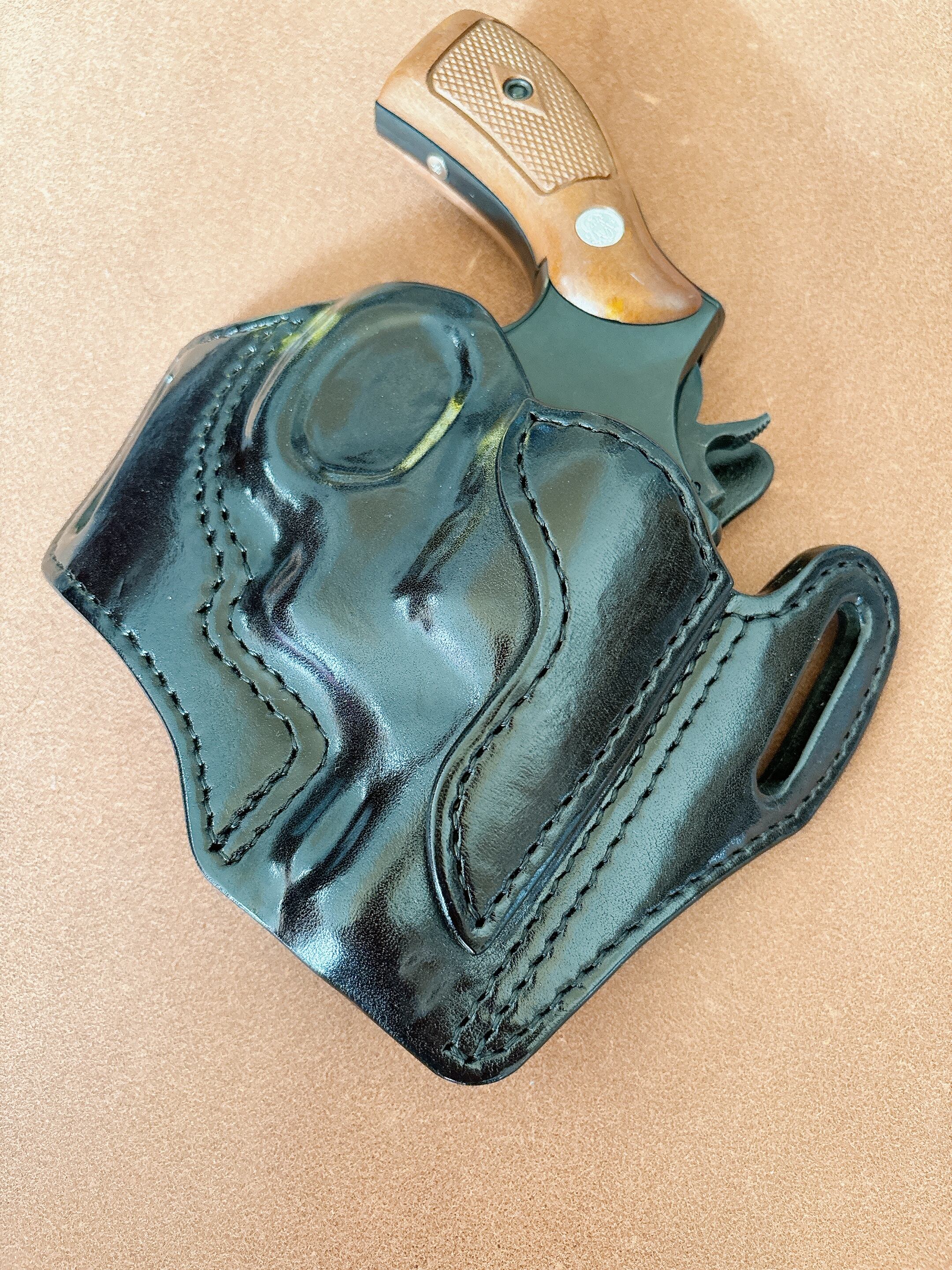 栃木レザー4mm厚(フルベジタブルタンニン鞣 ヌメ革)を切り出し黒染色を行いウエットフォーミングでフィッティングしておりスムーズにリホルスター可能です