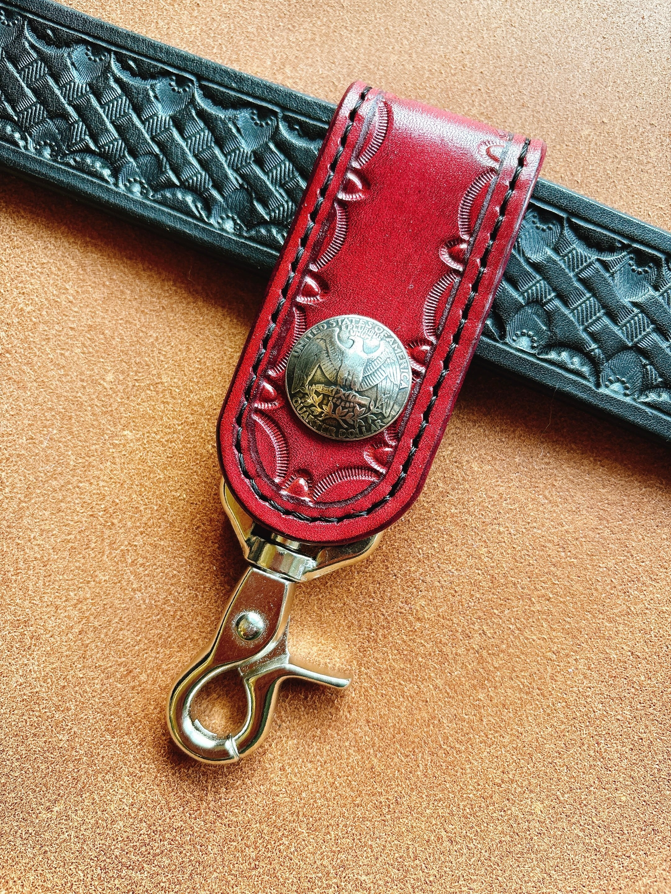 コンチョはクォータードル硬貨を加工しコンチョに仕上げホック部に取り付けてます